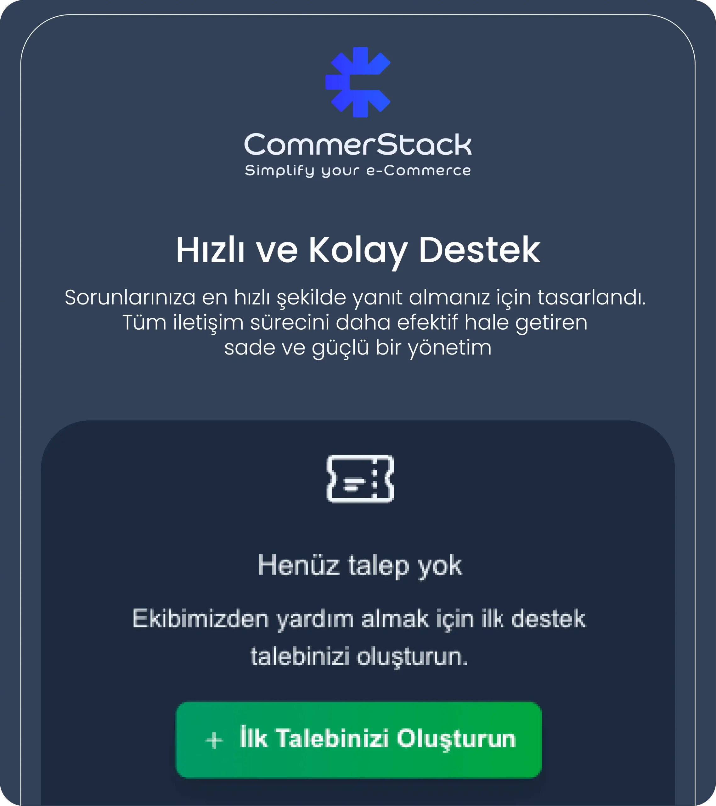 Commerstack kullanıcı dostu arayüzü sayesinde teknik bilgi gerektirmeden çok kolay bir